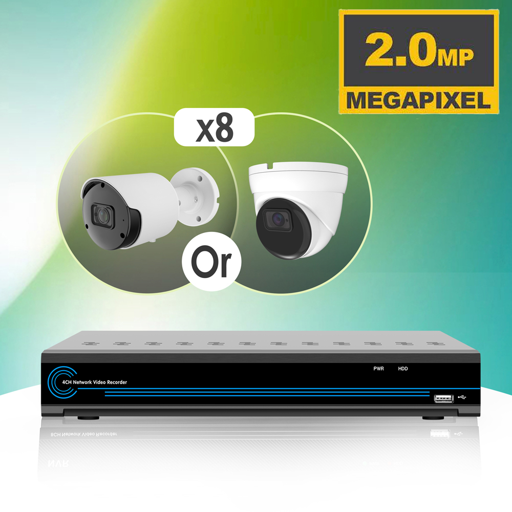 "NDAA Compliance" 8 2MP Dome IP Package NO HDD